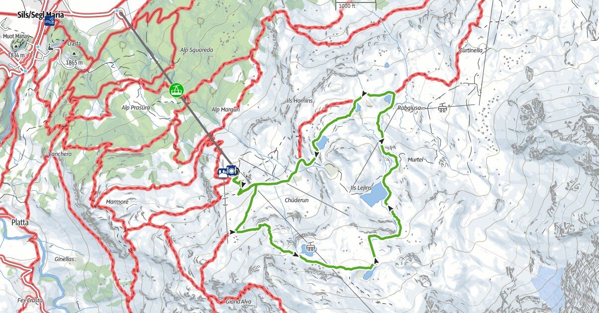 This iconic large red cable car connects the charming village of Sils Maria with the Furtschellas Middle Station (Mittelstation). It serves as the premier gateway for exploring the western flank of the majestic Corvatsch region.