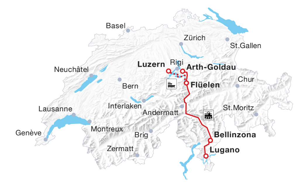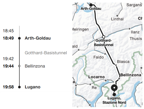 在 Arth Goldau - Lugano 中間有個隧道可以快速通往,但是只有適用在特地的普通 / 高速列車與路段喔 ! 如果有想趕時間的旅客,不要求風景路線,請預訂通往新聖哥達基底隧道的普通列車 / 高速列車。