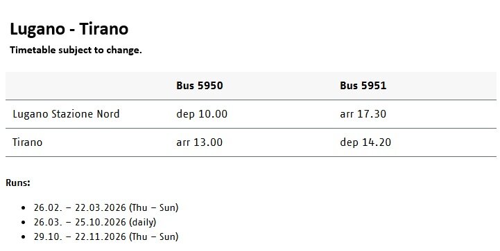 • 巴士:蒂拉諾 Tirano - 盧加諾 Lugano