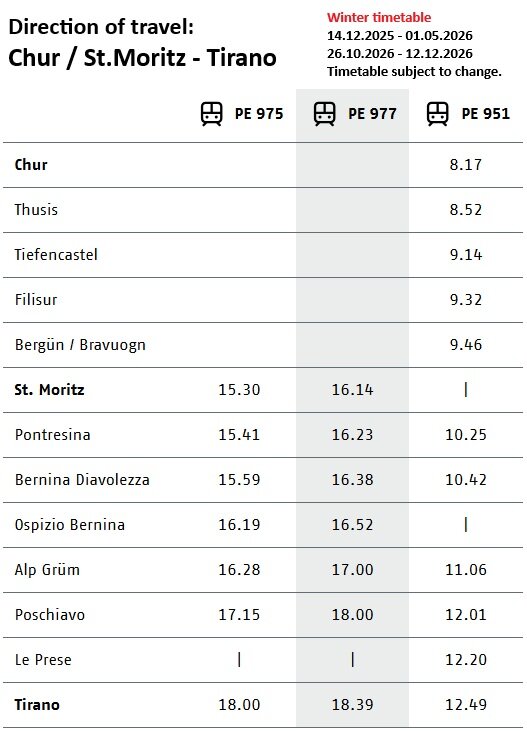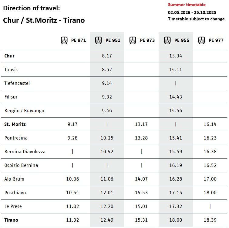 Bernina Express Bus Timetable