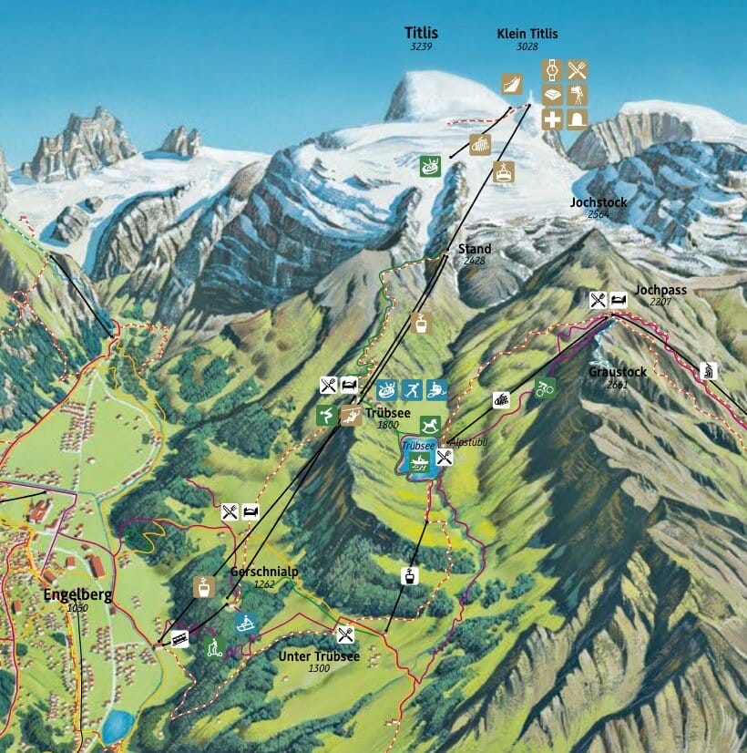 搭纜車中途可停在 Trübsee,湖邊有划船、野餐及兒童遊樂場。夏季限定,有免費划船與攀岩設施。