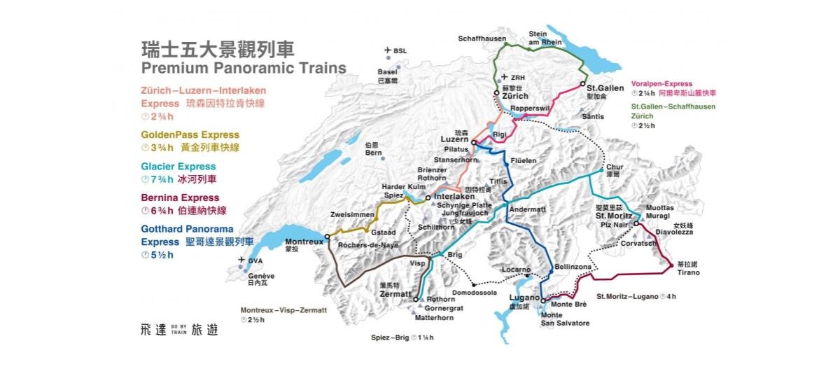 四大山群、五大景觀火車、六大湖區,不論你是第一次還是第 N 次造訪瑞士,都有適合你的規劃!永遠看不完的美景、走不完的群山、玩不完的湖泊,想要健行、騎單車、滑雪還是純觀光?都適合這款 Grand Train Tour!