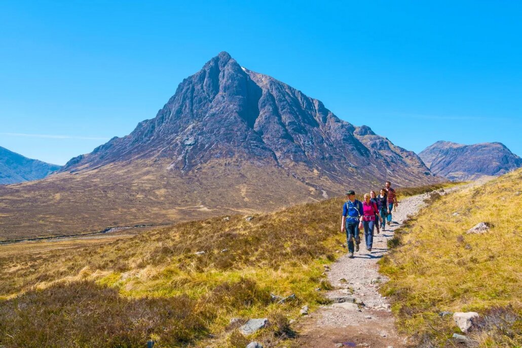 魔鬼階梯是著名長途步道— 西高地之路 West Highland Way, WHW 上最具挑戰性的一段,位於 Kingshouse Hotel 國王之家酒店 和 Kinlochleven 基洛克利文 這兩個主要休息站之間。 這段路程的挑戰性在於其持續的陡峭上坡 (從東向西走時) 和多石崎嶇的表面。雖然它不是技術性攀爬,但對體能要求較高。一旦您成功爬到最高點,回報是絕對值得的。在最高處,您可以享受到 360 度的全景視野 !