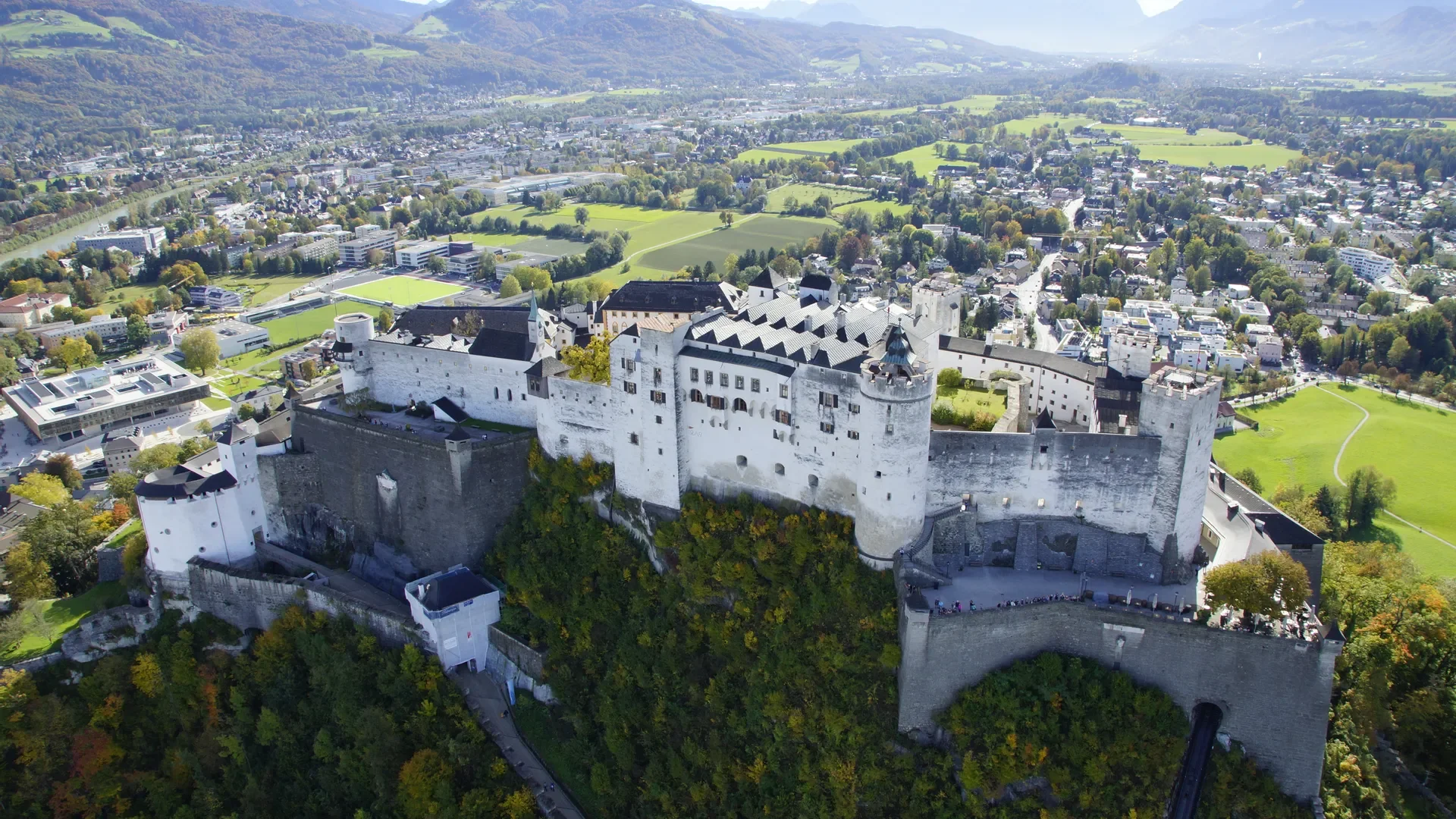 霍恩薩爾斯堡城堡雄踞於 Festungsberg 山頂,是薩爾斯堡天際線最醒目的地標,也是中歐現存最大且保存最完好的中世紀城堡之一。 搭乘登山纜車至山頂俯瞰整個舊城與阿爾卑斯山脈,日落時特別推薦。