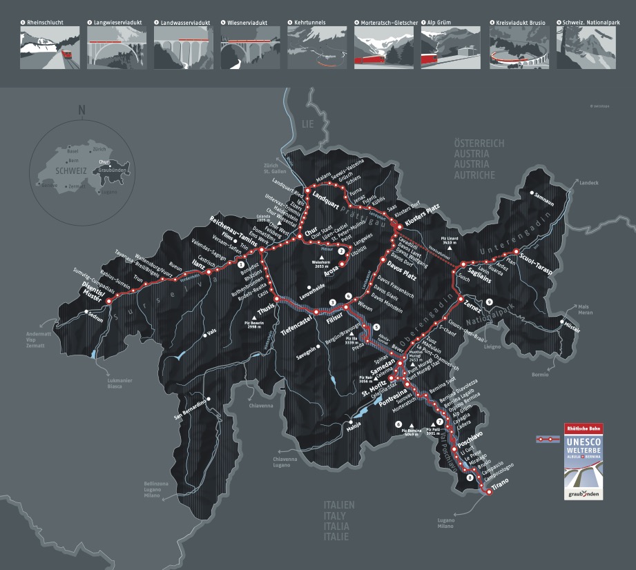 Rhaetian Railway 含伯連納路線:Landwasser Viadukt 蘭德瓦瑟大橋...