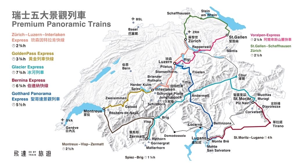 Luzern-Interlaken 快線, GoldenPass Express 黃金列車, Glacier Express 冰河列車, Bernina Express 伯連納快線...