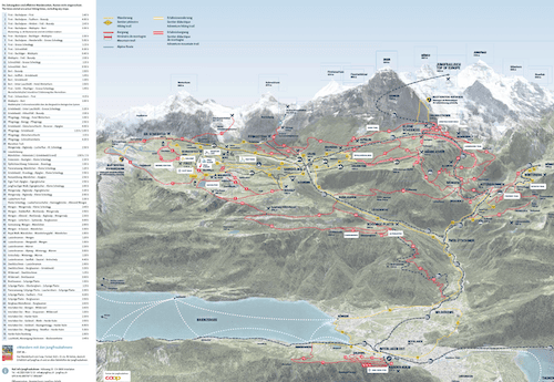 已包含在瑞士旅行通行證的山峰:瑞吉山 Rigi、施圖斯 Stoos、石丹峰 Stanserhorn。少女峰、策馬特需另外購票,但瑞士旅行通行證已包含 Interlaken 登山至 Grindelwald 或至 Wengen / Murren / Lauterbrunnen 的少女峰山區路段