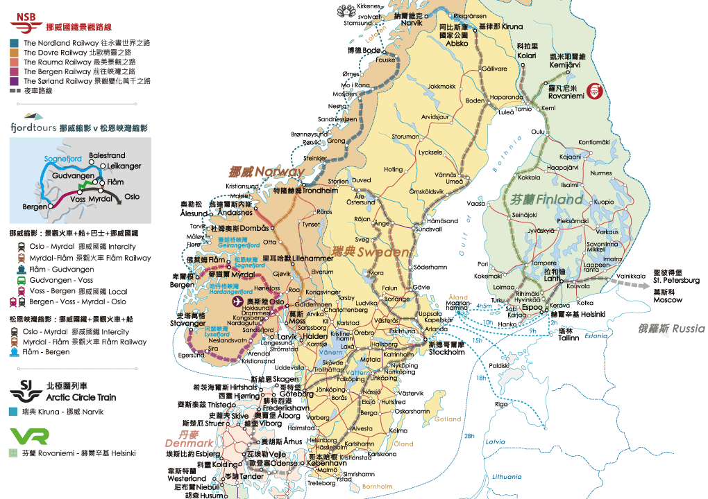 挪威國鐵 (NSB) 奧斯陸 Oslo 、卑爾根 Bergen、史塔萬格 Stavanger 及跨國路線...
